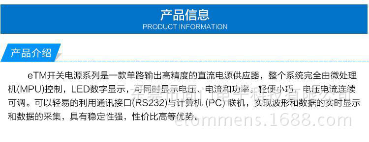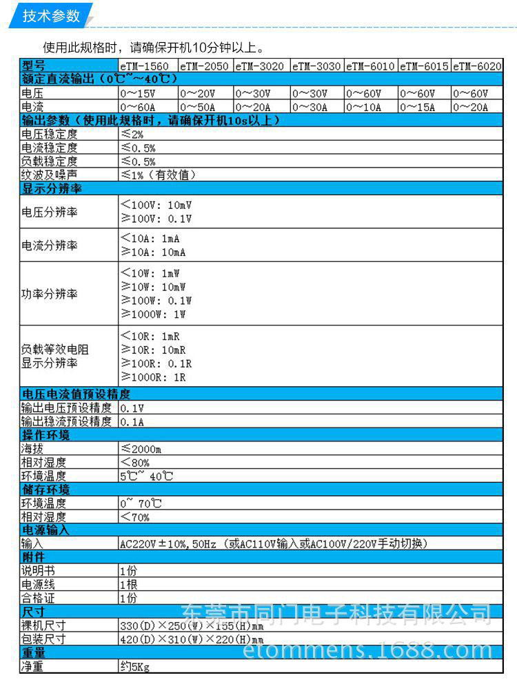 同門 eTM-1560 穩(wěn)定 大功率 高精度 開關(guān)電源 900W 15V 60A