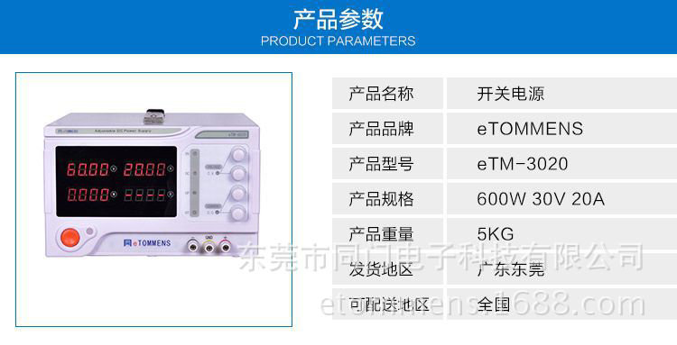 同門 eTM-3020plus 穩(wěn)定 大功率 高精度 開關(guān)電源 600W 30V 20A